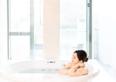 Bringing the outdoors into the spa’s spacious interiors, Guests can choose among Melo Spa’s private treatment suites with views of the mountains, the Tolo Harbour, or the Hyatt Regency’s gardens. These suites ensure utmost privacy for guests, with rain showers and whirlpool tubs where they can rinse off and soak between treatments.