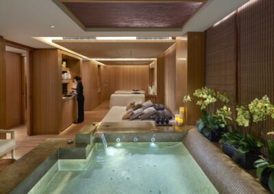The Mandarin Spa is part of a 2,100-sqm wellness facility that covers three separate floors and includes the hotel’s fitness center, indoor pool, and in-house beauty salon and barber shop. The spa itself is located on the hotel’s 24th floor, which covers treatment rooms, relaxation areas, and facilities for heat and water therapy.