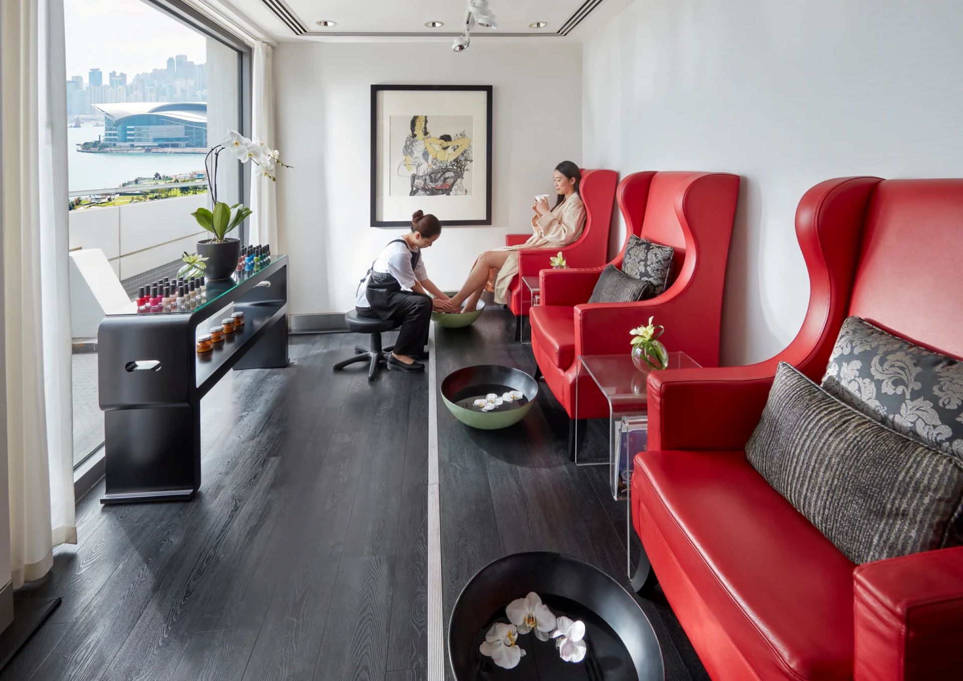 The Mandarin Spa is located on the 24th floor of the Mandarin Oriental Hotel in Central. It is within walking distance of the Central MRT station and the Landmark Shopping Center, as well as the designer boutiques in Prince’s Building. Nearby is the HSBC Building, with its iconic architecture.