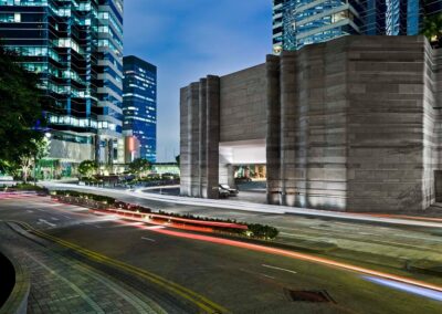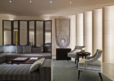 • The entrance to the hotel is through the “Stone Curtain” at Pacific Place, designed by Thomas Hetherwick