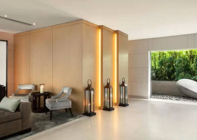 • Spa-inspired bathrooms with walk-in rain showers, limestone clad island bathtubs, dressing areas, and limestone sculptures