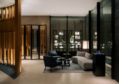 Tucked away from The Lawn on the 6th floor is The Tea Room, separated from the rest of the 6th floor space with timber panels that evoke the hotel’s entrance. The Andre Fu-designed indoor space provides a cozy retreat for the times when spending time indoors with a hot drink, a plate of snacks, and good company is the best option.